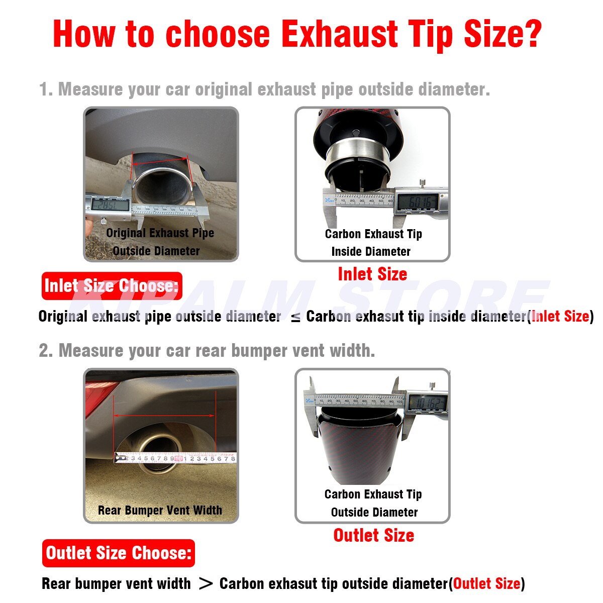 4. We provide clear pictures showed how to measure and choose the inlet and outlet size. Please check as much as possible to make sure the exhaust tip can fit on your car.