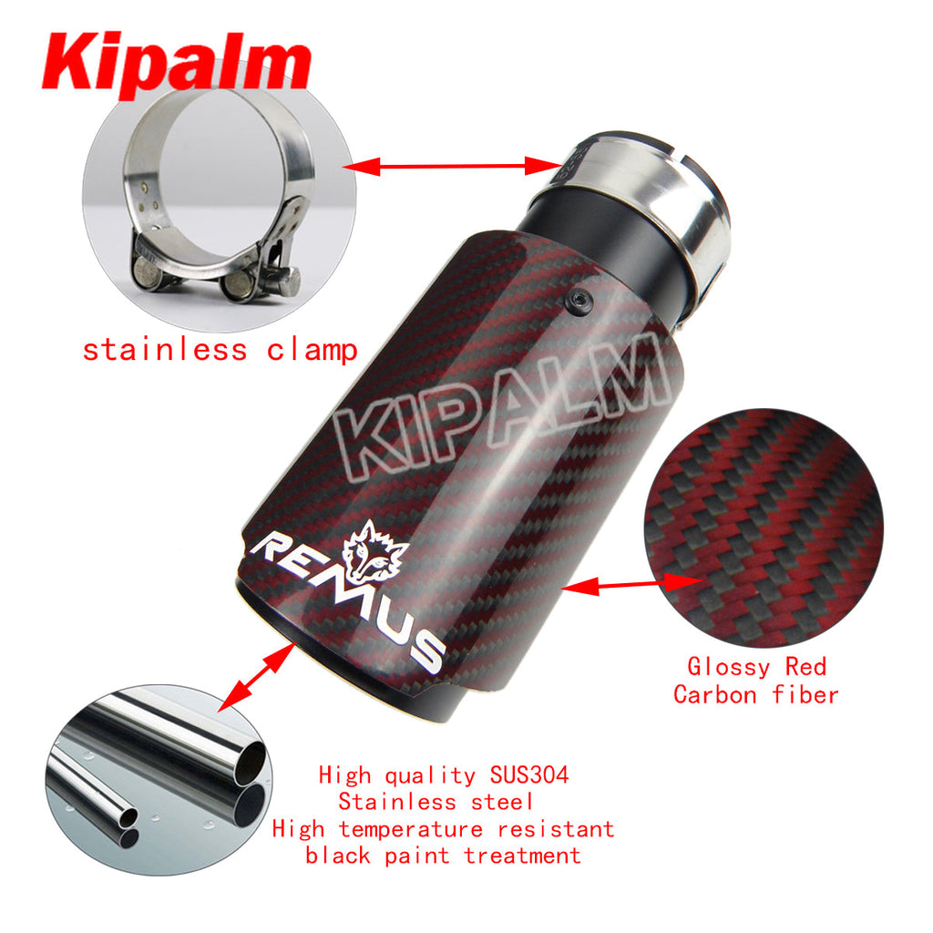 1 piece Remus Sport Glossy Red Carbon Fiber Exhaust Muffler Tips Matte Black Inner Pipe for BMW AUDI GOLF MAZDA Land Rover JAGUA