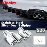1 Pair Dual Tips Chrome Black Stainless Steel Exhaust Pipe for BMW 3 Series G20 Oval Shape Tailpipe
