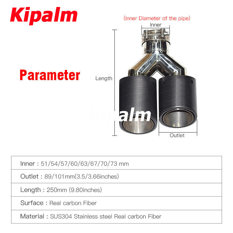 1PC Dual Outlet Curly Twill Weave Carbon Fiber Exhaust Tips 304 Stainless Steel Muffler Pipe with M Logo Tiguan R BMW Audi