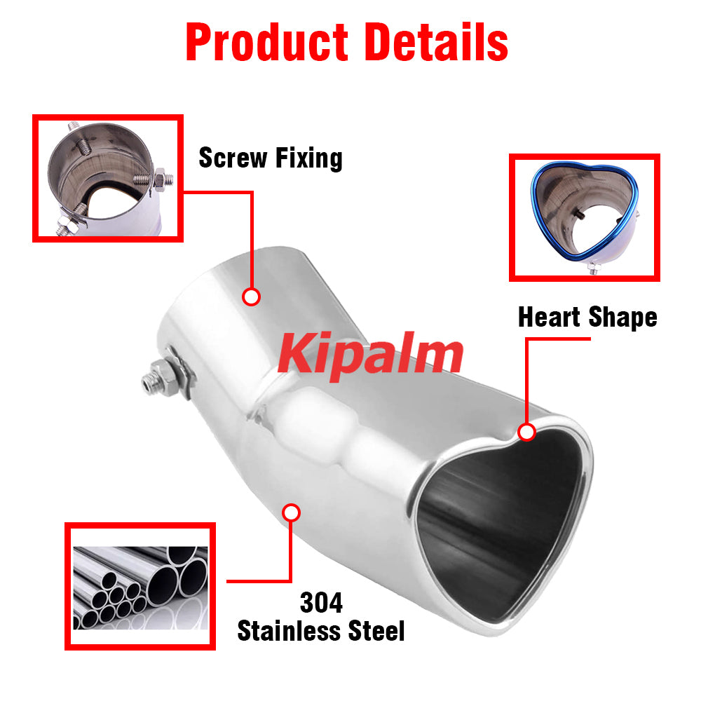 Universal Adjustable 2.5" Burnt Blue Stainless Steel Single Exhaust Tips Silver Muffler Tail with Heart Shape Style