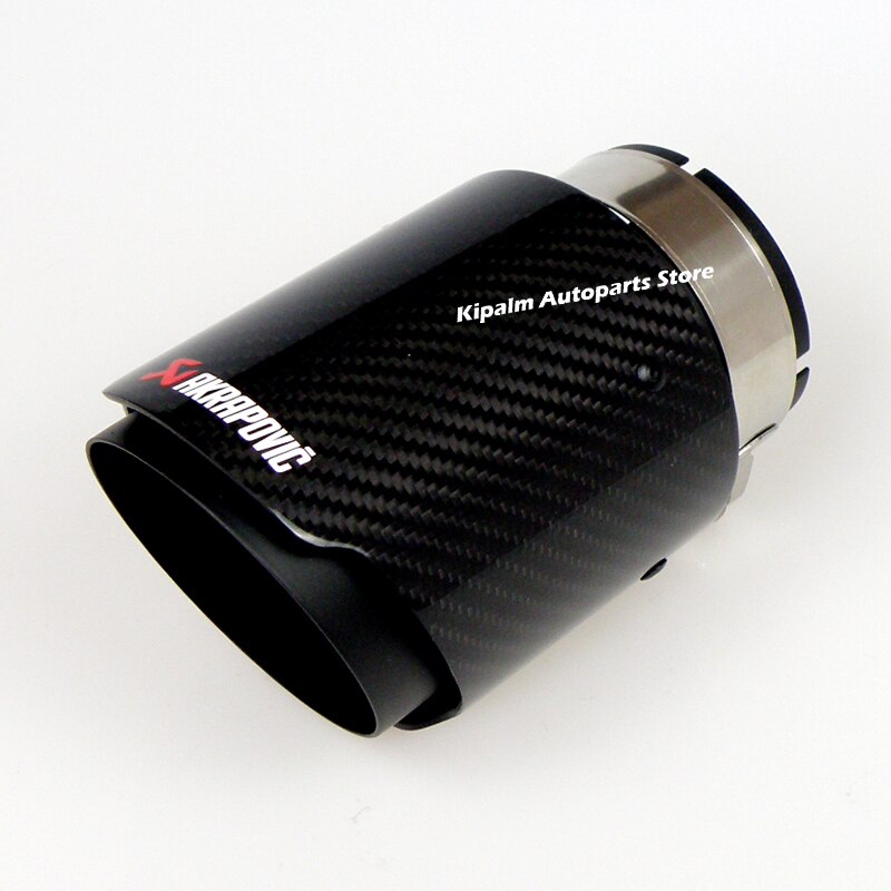 1PCS Universal Akrapovic Carbon Fibre Car Exhaust Pipe Muffler Tip Glossy Black Twill Carbon Fiber Cover + Black Coated Stainless Steel