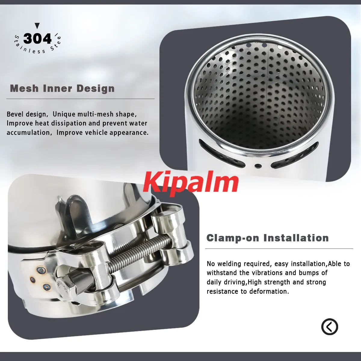 4. Universal fit for all round exhaust piping of given correct size